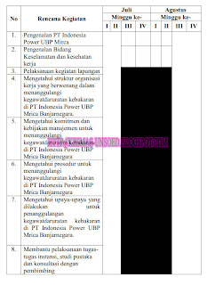 Rencana kegiatan magang di PT Indonesia Power UBP Mrica Banjarnegara adalah :
