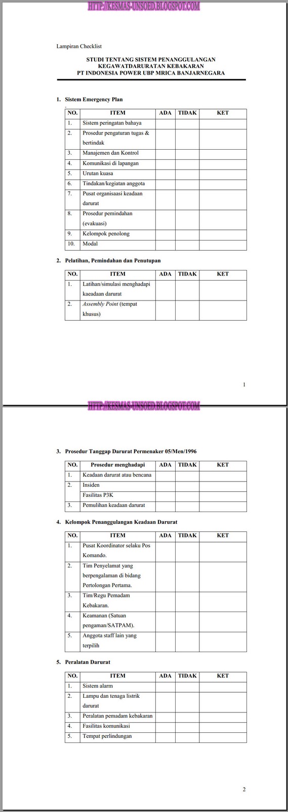 1. Prosedur menghadapi keadaan darurat atau bencana